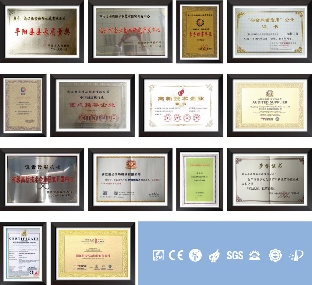 公司的主導產品有:ER、EK、EF、ES、EH/EB、EQ、EZ等12種系列產品,產品配套功率0.18~4000KW,近萬種傳動比,系列化的“恒齒”產品供客戶選擇。通過了ISO9001質量管理體系、ISO14001環境管理體系、ISO45001:2018職業健康安全管理體系和歐盟CE認證。公司堅持科技創新,具有“省級高新技術企業研究開發中心”,在上海設立開發中心,致力于國際、國內減速機設備的研制、開發和數字化設計,目前取得8項發明專利,56項實用新型專利。公司作為中國減速機標準化委員會委員單位,獲評為“國家星火計劃實施單位”、“品字標浙江制造”、“浙江省科技型企業”、“浙江省專利示范企業”、 “中國行業減速機十大品牌”、“浙江省企業成長之星”等榮譽稱號。